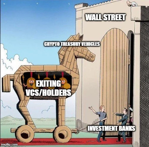 Our favourite topic this week is crypto treasury companies. Please don’t be fooled. Just think for a second why do these vehicles even need to exist? There are now lots of them. The first one was Microstrategy and in a way it made sense to do it. At the time, there was no Bitcoin ETF, and the argument was it is a great way for equity investors to express a view on Bitcoin. Then they started leveraging it up and just buying more and more. But that’s a different story. Nowadays not only is there a Bitcoin ETF but also an Ethereum one. So why on earth do we need crypto treasury companies? And indeed, why do they trade at premiums to the crypto they hold? Well, the first question is the real one. They are simply a very nice and efficient way for crypto bagholders to exit their crypto into a well recognised and efficiently structured vehicle often for cash without having to sell on the open market. Bitcoin can kinda still be made to sound logical, Ethereum also, but the tail is just pure grift. The copycat companies now being launched is pure memesis in action. Right now, crypto is going up and these things will probably go up. But they can do so without our money. We are absolutely salivating at the prospect of shorting the life out of these vehicles when the time is right. It’s not as far away as you think.